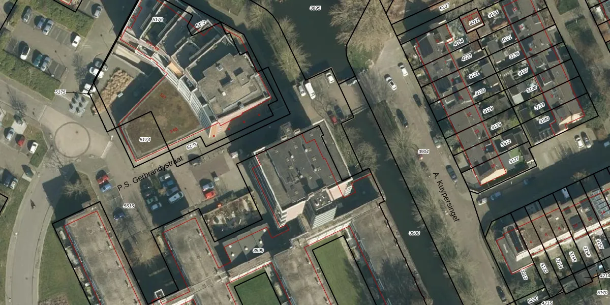 Het perceel waarop P.S. Gerbrandystraat 87 staat heeft een oppervlakte van 4135 m². Dit is een zeer groot perceel. De perceeloppervlakte wordt geregistreerd door het Kadaster. Gedetailleerde informatie over de maten van dit perceel kunt u vinden in het rapport Kadastrale kaart met maatvoering van P.S. Gerbrandystraat 87.