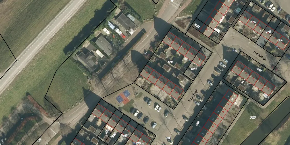 Het perceel waarop Randwijk 48 staat heeft een oppervlakte van 1380 m². Dit is een zeer groot perceel. De perceeloppervlakte wordt geregistreerd door het Kadaster. Gedetailleerde informatie over de maten van dit perceel kunt u vinden in het rapport Kadastrale kaart met maatvoering van Randwijk 48.