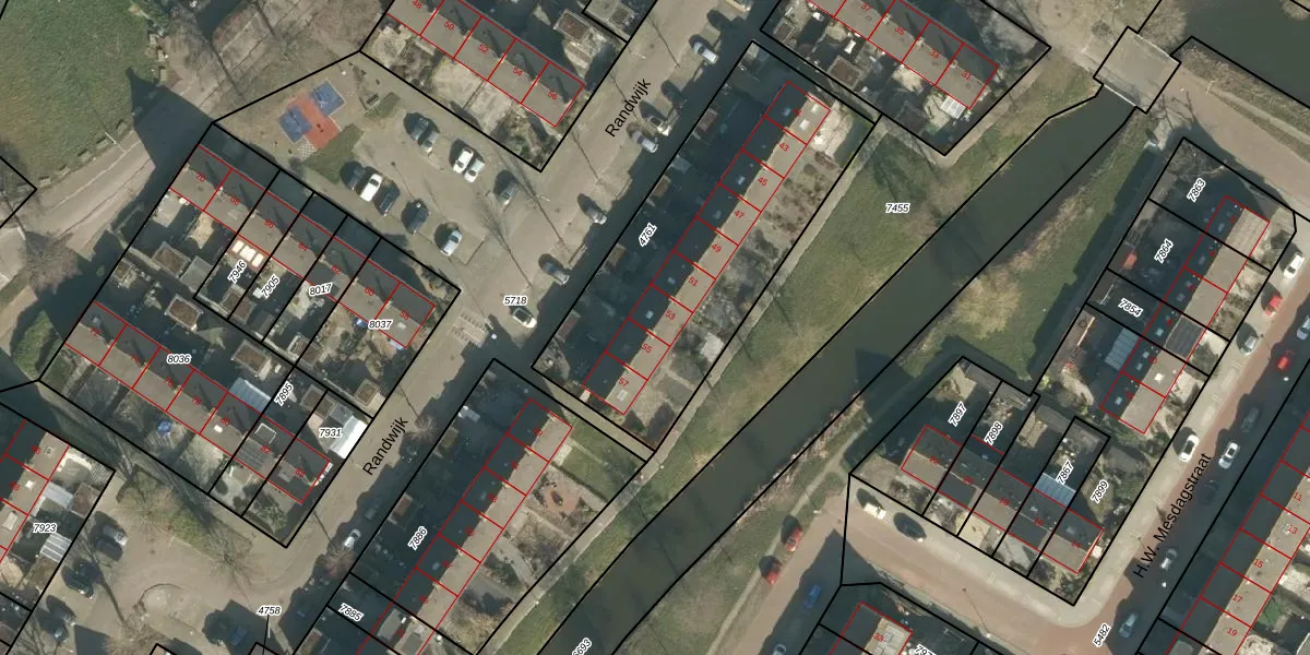 Het perceel waarop Randwijk 53 staat heeft een oppervlakte van 1366 m². Dit is een zeer groot perceel. De perceeloppervlakte wordt geregistreerd door het Kadaster. Gedetailleerde informatie over de maten van dit perceel kunt u vinden in het rapport Kadastrale kaart met maatvoering van Randwijk 53.