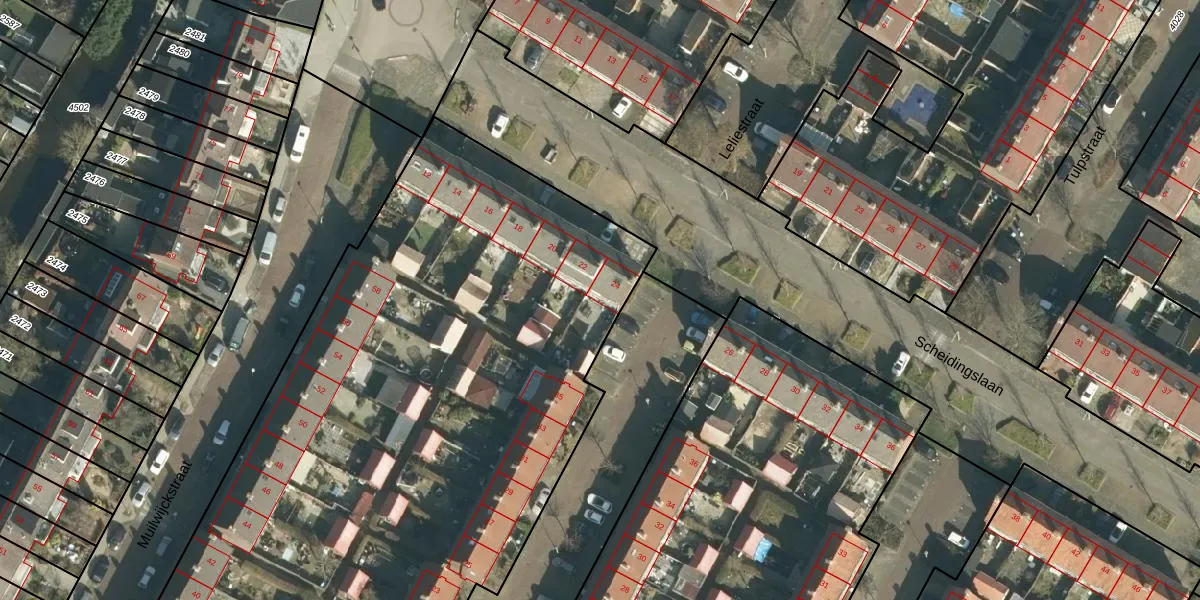 Scheidingslaan 24 is gelegen op kadastraal perceel PPD00B4020. Deze kadastrale aanduiding is uniek en wordt gebruikt door het Kadaster om eigendomsrechten en andere zakelijke rechten vast te leggen. Het perceel maakt onderdeel uit van de kadastrale gemeente Papendrecht.