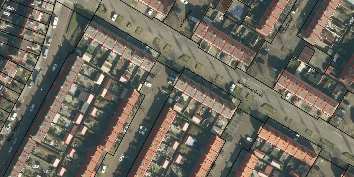 Scheidingslaan 26 is gelegen op kadastraal perceel PPD00B4021. Deze kadastrale aanduiding is uniek en wordt gebruikt door het Kadaster om eigendomsrechten en andere zakelijke rechten vast te leggen. Het perceel maakt onderdeel uit van de kadastrale gemeente Papendrecht.