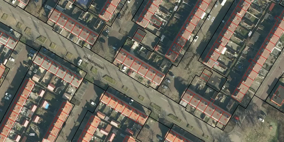 Het perceel waarop Scheidingslaan 37 staat heeft een oppervlakte van 4433 m². Dit is een zeer groot perceel. De perceeloppervlakte wordt geregistreerd door het Kadaster. Gedetailleerde informatie over de maten van dit perceel kunt u vinden in het rapport Kadastrale kaart met maatvoering van Scheidingslaan 37.