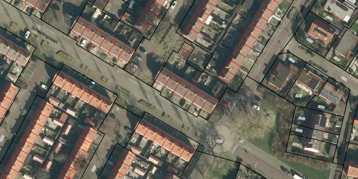 Het perceel waarop Scheidingslaan 47 staat heeft een oppervlakte van 4595 m². Dit is een zeer groot perceel. De perceeloppervlakte wordt geregistreerd door het Kadaster. Gedetailleerde informatie over de maten van dit perceel kunt u vinden in het rapport Kadastrale kaart met maatvoering van Scheidingslaan 47.