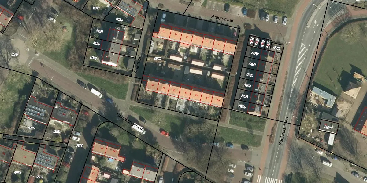 Scheidingslaan 63 is gelegen op kadastraal perceel PPD00B3779. Deze kadastrale aanduiding is uniek en wordt gebruikt door het Kadaster om eigendomsrechten en andere zakelijke rechten vast te leggen. Het perceel maakt onderdeel uit van de kadastrale gemeente Papendrecht.