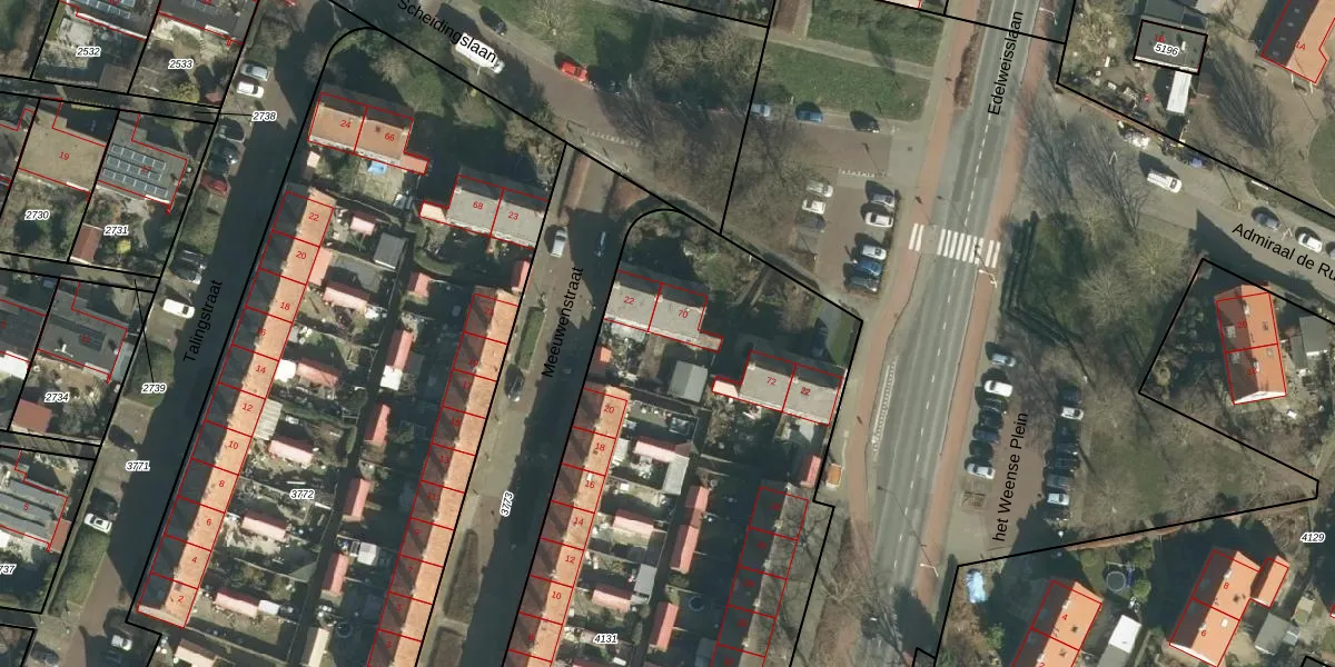Het perceel waarop Scheidingslaan 70 staat heeft een oppervlakte van 4190 m². Dit is een zeer groot perceel. De perceeloppervlakte wordt geregistreerd door het Kadaster. Gedetailleerde informatie over de maten van dit perceel kunt u vinden in het rapport Kadastrale kaart met maatvoering van Scheidingslaan 70.
