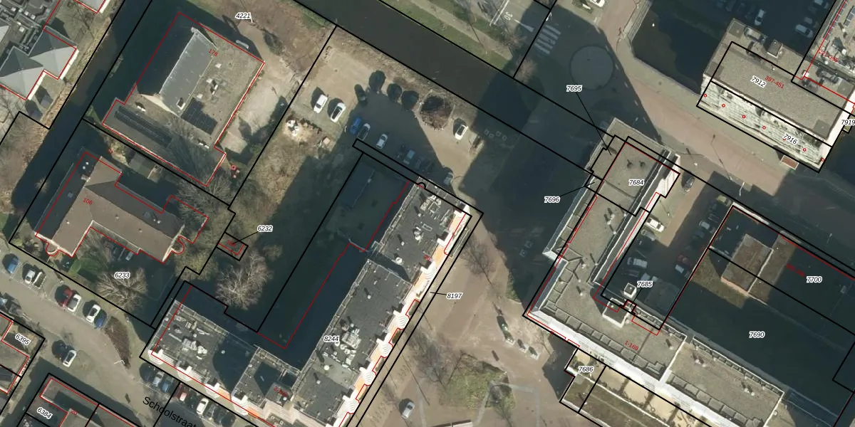 Het perceel waarop Schoolstraat 64 staat heeft een oppervlakte van 2389 m². Dit is een zeer groot perceel. De perceeloppervlakte wordt geregistreerd door het Kadaster. Gedetailleerde informatie over de maten van dit perceel kunt u vinden in het rapport Kadastrale kaart met maatvoering van Schoolstraat 64.