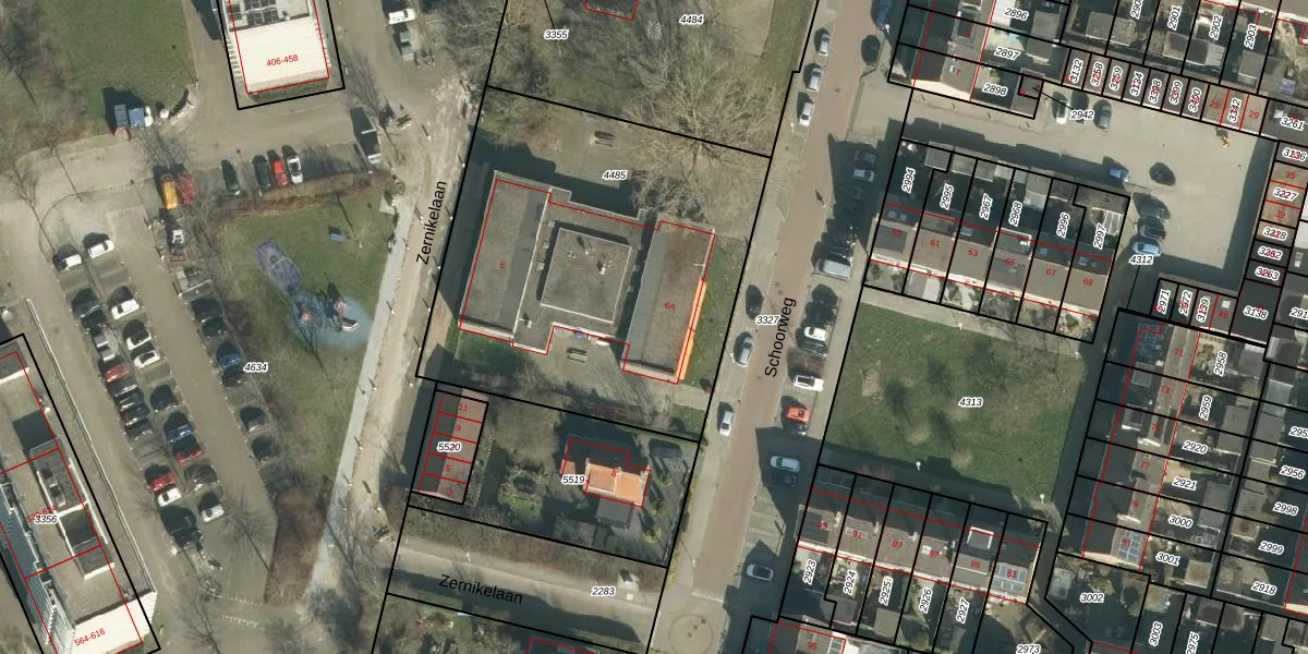 Het perceel waarop Schoorweg 6-A staat heeft een oppervlakte van 2045 m². Dit is een zeer groot perceel. De perceeloppervlakte wordt geregistreerd door het Kadaster. Gedetailleerde informatie over de maten van dit perceel kunt u vinden in het rapport Kadastrale kaart met maatvoering van Schoorweg 6-A.