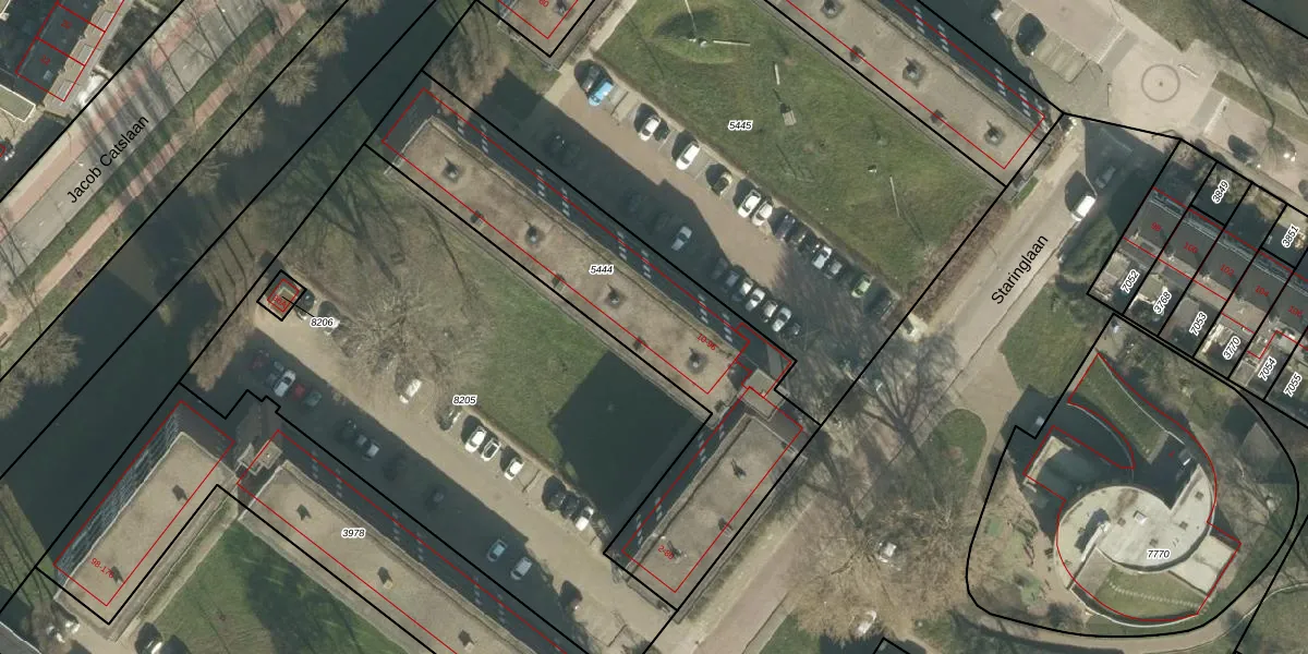 Het perceel waarop Staringlaan 60 staat heeft een oppervlakte van 1500 m². Dit is een zeer groot perceel. De perceeloppervlakte wordt geregistreerd door het Kadaster. Gedetailleerde informatie over de maten van dit perceel kunt u vinden in het rapport Kadastrale kaart met maatvoering van Staringlaan 60.
