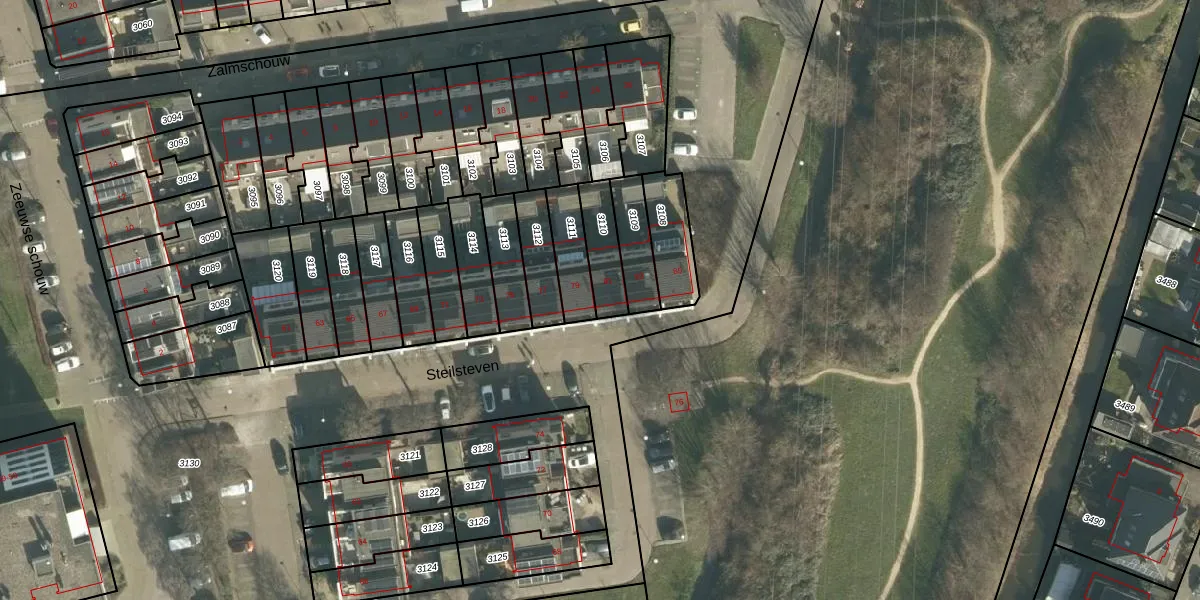 Het perceel waarop Steilsteven 81 staat heeft een oppervlakte van 123 m². Dit is een middelgroot perceel. De perceeloppervlakte wordt geregistreerd door het Kadaster. Gedetailleerde informatie over de maten van dit perceel kunt u vinden in het rapport Kadastrale kaart met maatvoering van Steilsteven 81.
