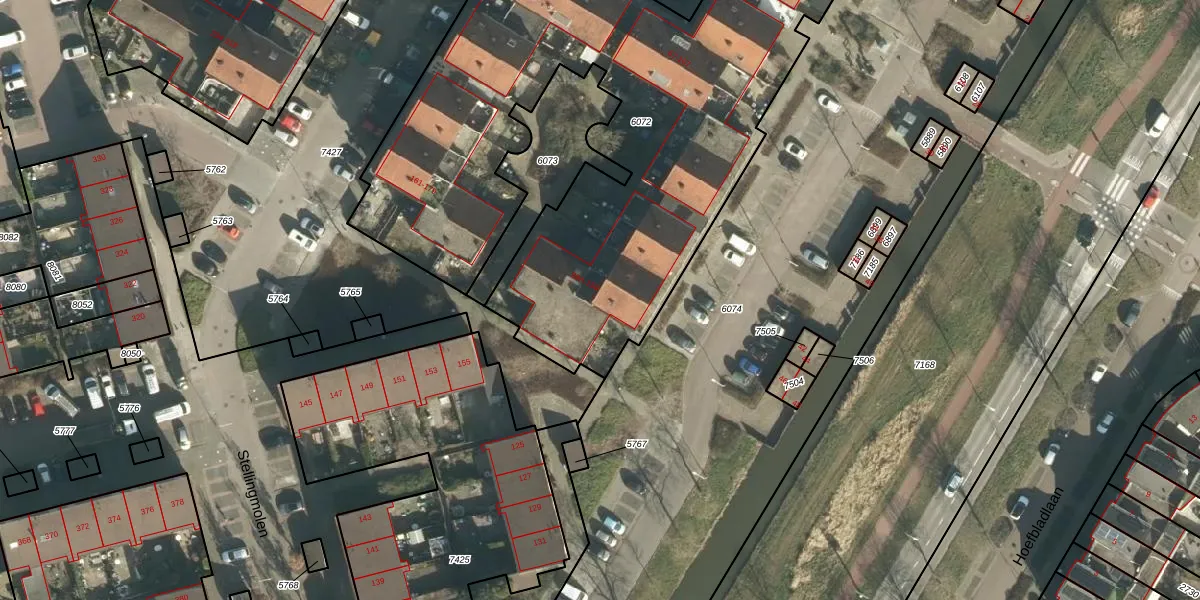 Het perceel waarop Stellingmolen 115 staat heeft een oppervlakte van 4630 m². Dit is een zeer groot perceel. De perceeloppervlakte wordt geregistreerd door het Kadaster. Gedetailleerde informatie over de maten van dit perceel kunt u vinden in het rapport Kadastrale kaart met maatvoering van Stellingmolen 115.