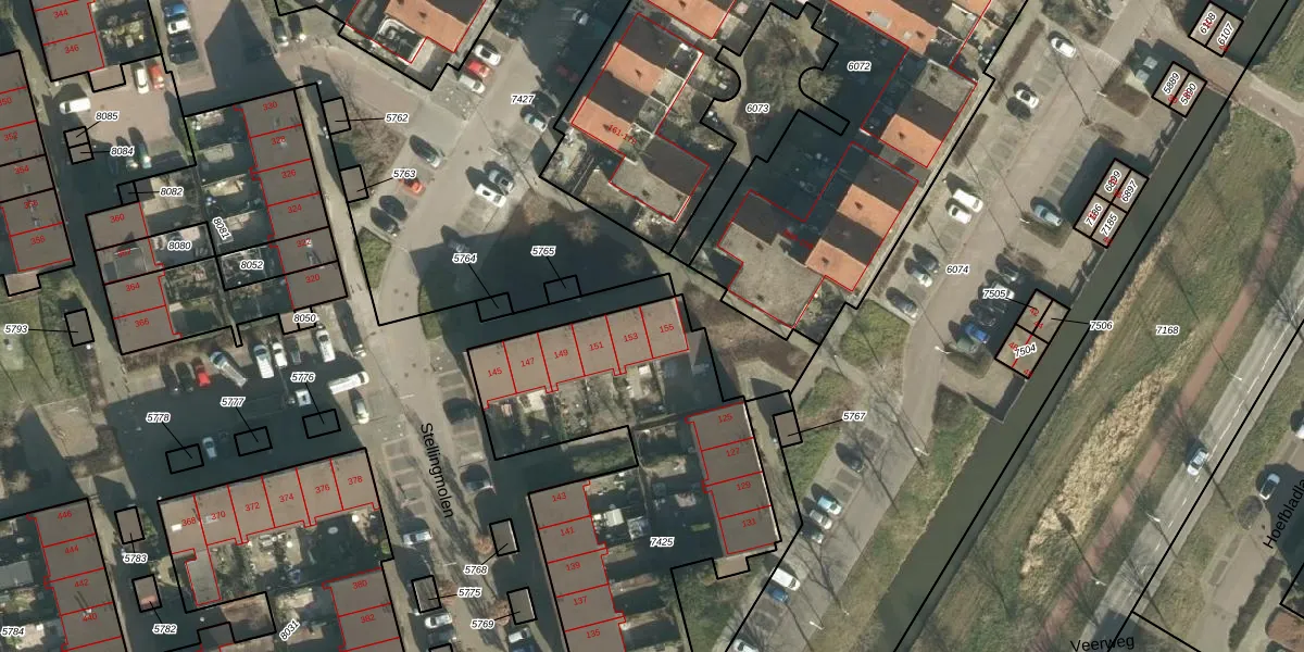 Het perceel waarop Stellingmolen 155 staat heeft een oppervlakte van 1657 m². Dit is een zeer groot perceel. De perceeloppervlakte wordt geregistreerd door het Kadaster. Gedetailleerde informatie over de maten van dit perceel kunt u vinden in het rapport Kadastrale kaart met maatvoering van Stellingmolen 155.