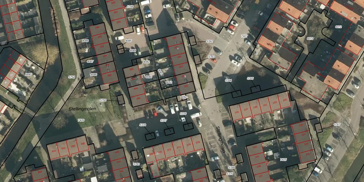 Het perceel waarop Stellingmolen 320 staat heeft een oppervlakte van 832 m². Dit is een groot perceel. De perceeloppervlakte wordt geregistreerd door het Kadaster. Gedetailleerde informatie over de maten van dit perceel kunt u vinden in het rapport Kadastrale kaart met maatvoering van Stellingmolen 320.