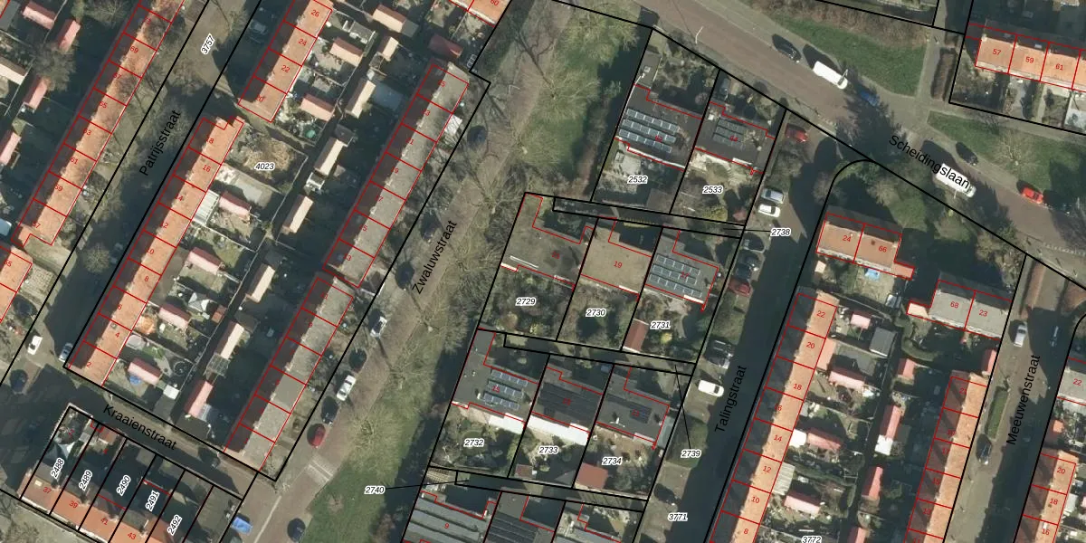 Gebruik de zoekbalk of klik op een perceel voor informatie over de adressen binnen dit perceel.