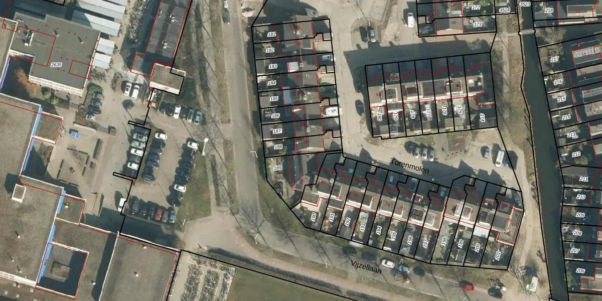 Het perceel waarop Torenmolen 91 staat heeft een oppervlakte van 148 m². Dit is een middelgroot perceel. De perceeloppervlakte wordt geregistreerd door het Kadaster. Gedetailleerde informatie over de maten van dit perceel kunt u vinden in het rapport Kadastrale kaart met maatvoering van Torenmolen 91.