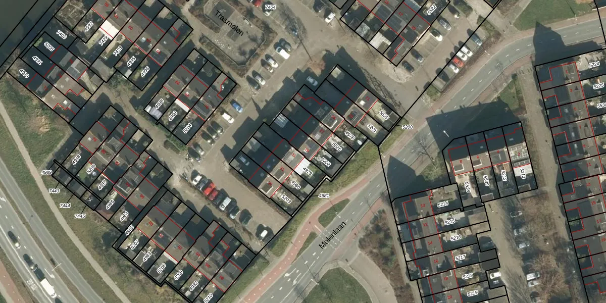 Het perceel waarop Trasmolen 29 staat heeft een oppervlakte van 161 m². Dit is een middelgroot perceel. De perceeloppervlakte wordt geregistreerd door het Kadaster. Gedetailleerde informatie over de maten van dit perceel kunt u vinden in het rapport Kadastrale kaart met maatvoering van Trasmolen 29.