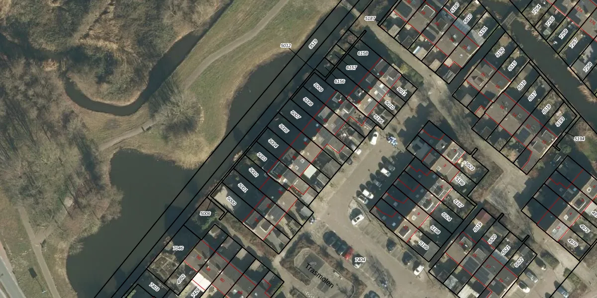 Het perceel waarop Trasmolen 44 staat heeft een oppervlakte van 169 m². Dit is een middelgroot perceel. De perceeloppervlakte wordt geregistreerd door het Kadaster. Gedetailleerde informatie over de maten van dit perceel kunt u vinden in het rapport Kadastrale kaart met maatvoering van Trasmolen 44.