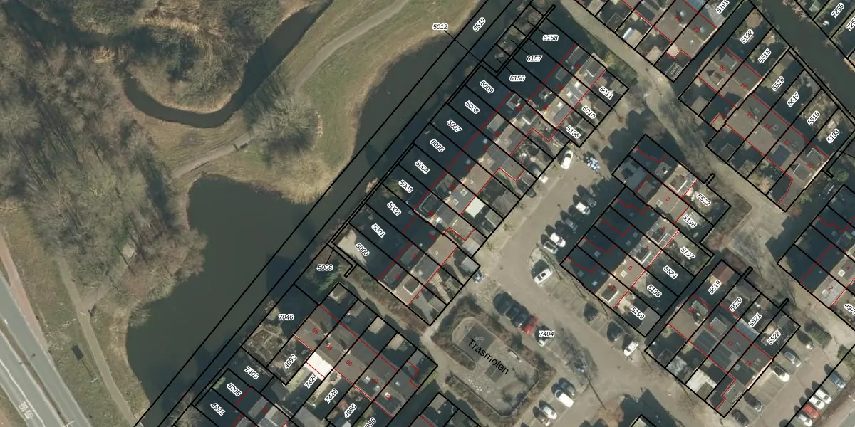 Het perceel waarop Trasmolen 48 staat heeft een oppervlakte van 163 m². Dit is een middelgroot perceel. De perceeloppervlakte wordt geregistreerd door het Kadaster. Gedetailleerde informatie over de maten van dit perceel kunt u vinden in het rapport Kadastrale kaart met maatvoering van Trasmolen 48.