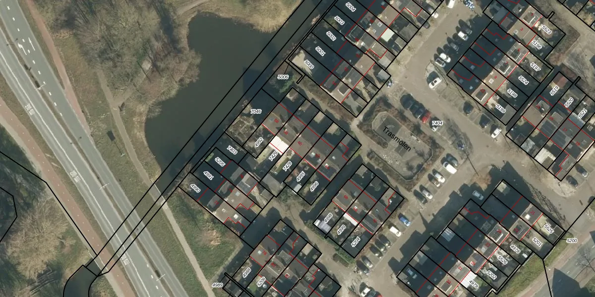 Het perceel waarop Trasmolen 60 staat heeft een oppervlakte van 201 m². Dit is een middelgroot perceel. De perceeloppervlakte wordt geregistreerd door het Kadaster. Gedetailleerde informatie over de maten van dit perceel kunt u vinden in het rapport Kadastrale kaart met maatvoering van Trasmolen 60.