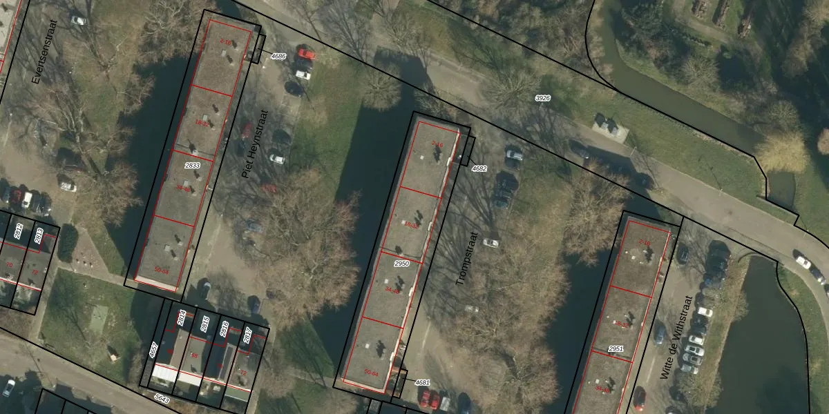Het perceel waarop Trompstraat 24 staat heeft een oppervlakte van 996 m². Dit is een groot perceel. De perceeloppervlakte wordt geregistreerd door het Kadaster. Gedetailleerde informatie over de maten van dit perceel kunt u vinden in het rapport Kadastrale kaart met maatvoering van Trompstraat 24.