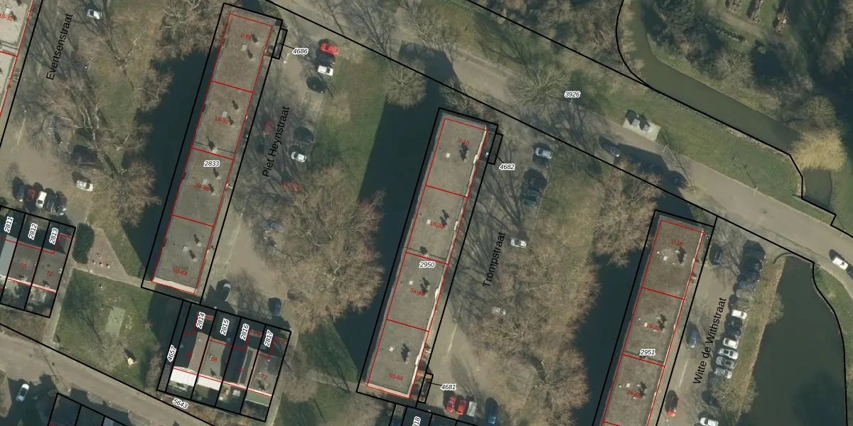Het perceel waarop Trompstraat 28 staat heeft een oppervlakte van 996 m². Dit is een groot perceel. De perceeloppervlakte wordt geregistreerd door het Kadaster. Gedetailleerde informatie over de maten van dit perceel kunt u vinden in het rapport Kadastrale kaart met maatvoering van Trompstraat 28.