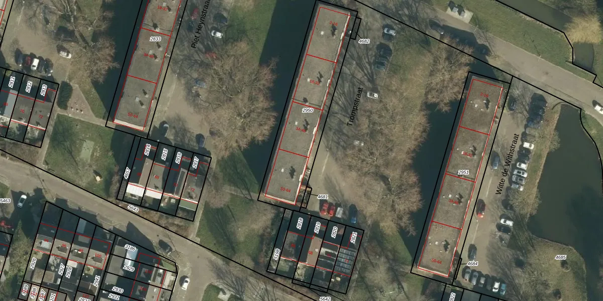 Het perceel waarop Trompstraat 38 staat heeft een oppervlakte van 996 m². Dit is een groot perceel. De perceeloppervlakte wordt geregistreerd door het Kadaster. Gedetailleerde informatie over de maten van dit perceel kunt u vinden in het rapport Kadastrale kaart met maatvoering van Trompstraat 38.