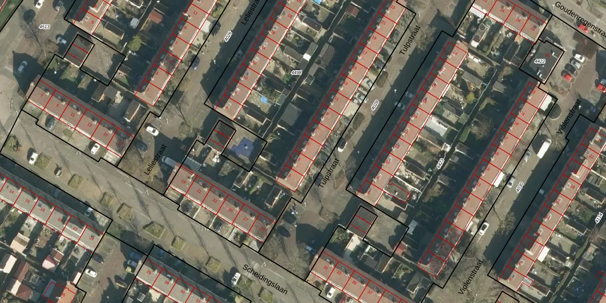 Het perceel waarop Tulpstraat 5 staat heeft een oppervlakte van 4490 m². Dit is een zeer groot perceel. De perceeloppervlakte wordt geregistreerd door het Kadaster. Gedetailleerde informatie over de maten van dit perceel kunt u vinden in het rapport Kadastrale kaart met maatvoering van Tulpstraat 5.