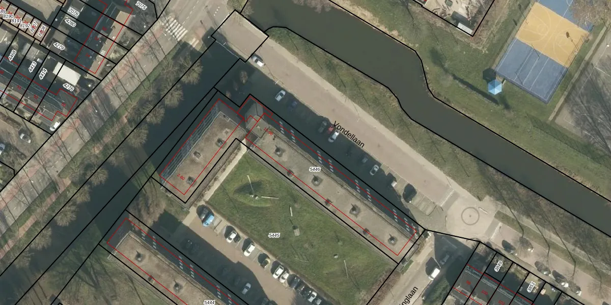 Vondellaan 14 is gelegen op kadastraal perceel PPD00A5446. Deze kadastrale aanduiding is uniek en wordt gebruikt door het Kadaster om eigendomsrechten en andere zakelijke rechten vast te leggen. Het perceel maakt onderdeel uit van de kadastrale gemeente Papendrecht.
