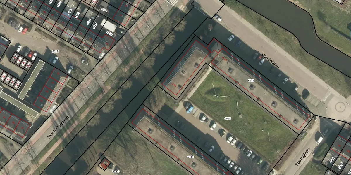 Vondellaan 32 is gelegen op kadastraal perceel PPD00A5446. Deze kadastrale aanduiding is uniek en wordt gebruikt door het Kadaster om eigendomsrechten en andere zakelijke rechten vast te leggen. Het perceel maakt onderdeel uit van de kadastrale gemeente Papendrecht.