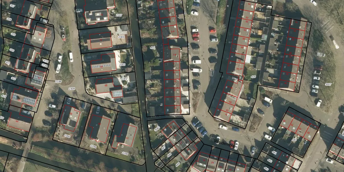 Het perceel waarop Weidemolen 11 staat heeft een oppervlakte van 1900 m². Dit is een zeer groot perceel. De perceeloppervlakte wordt geregistreerd door het Kadaster. Gedetailleerde informatie over de maten van dit perceel kunt u vinden in het rapport Kadastrale kaart met maatvoering van Weidemolen 11.