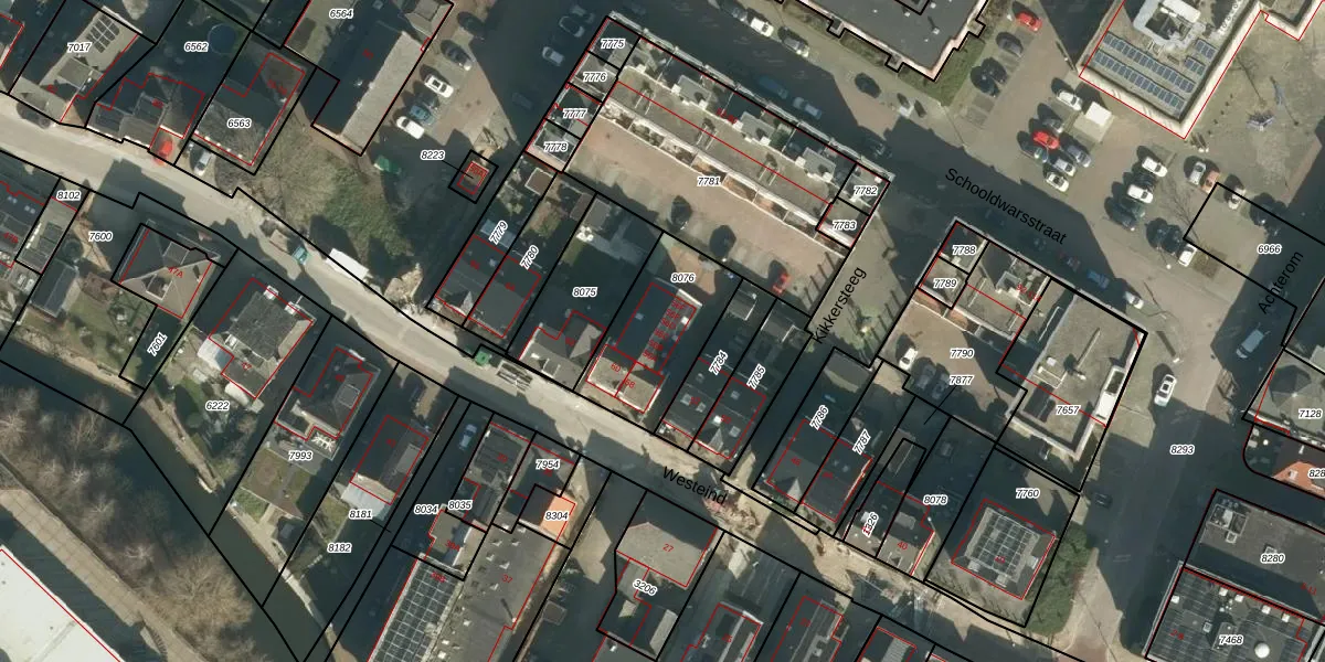 Het perceel waarop Westeind 56-C staat heeft een oppervlakte van 381 m². Dit is een groot perceel. De perceeloppervlakte wordt geregistreerd door het Kadaster. Gedetailleerde informatie over de maten van dit perceel kunt u vinden in het rapport Kadastrale kaart met maatvoering van Westeind 56-C.