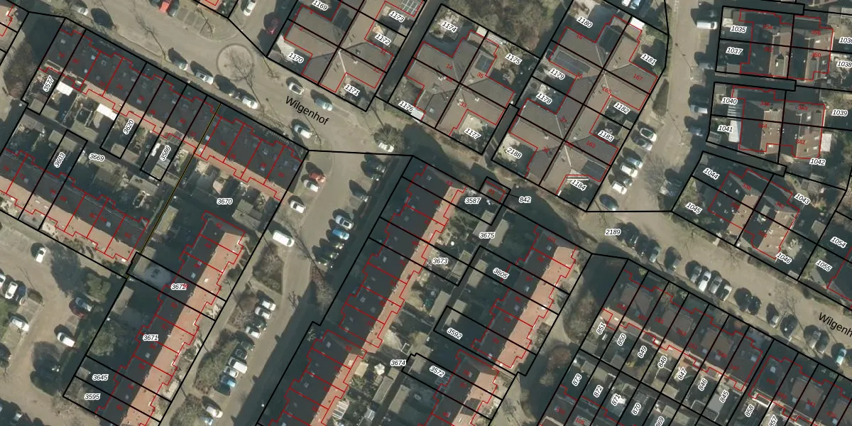 Het perceel waarop Wilgenhof 45 staat heeft een oppervlakte van 523 m². Dit is een groot perceel. De perceeloppervlakte wordt geregistreerd door het Kadaster. Gedetailleerde informatie over de maten van dit perceel kunt u vinden in het rapport Kadastrale kaart met maatvoering van Wilgenhof 45.