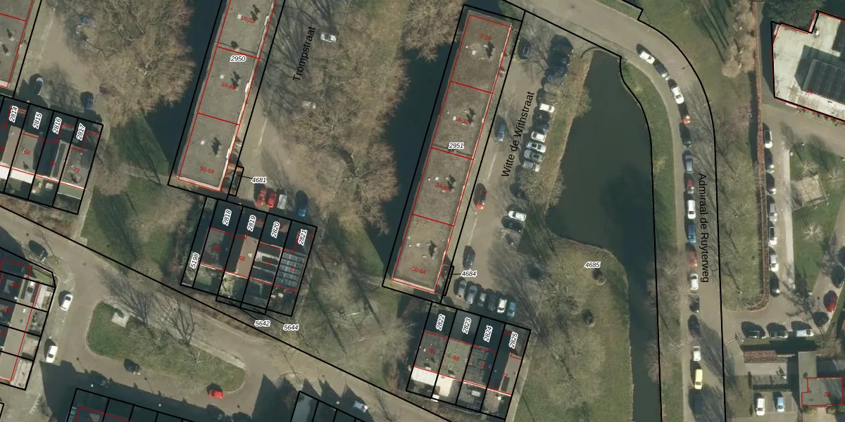 Het perceel waarop Witte de Withstraat 46 staat heeft een oppervlakte van 997 m². Dit is een groot perceel. De perceeloppervlakte wordt geregistreerd door het Kadaster. Gedetailleerde informatie over de maten van dit perceel kunt u vinden in het rapport Kadastrale kaart met maatvoering van Witte de Withstraat 46.