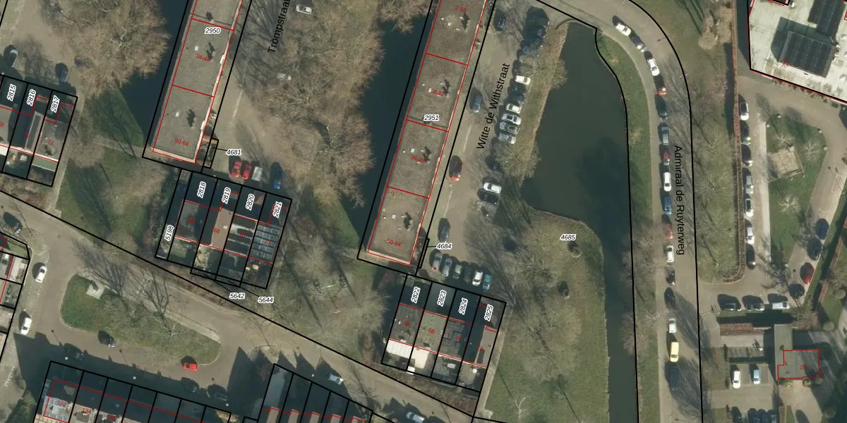 Het perceel waarop Witte de Withstraat 50 staat heeft een oppervlakte van 997 m². Dit is een groot perceel. De perceeloppervlakte wordt geregistreerd door het Kadaster. Gedetailleerde informatie over de maten van dit perceel kunt u vinden in het rapport Kadastrale kaart met maatvoering van Witte de Withstraat 50.