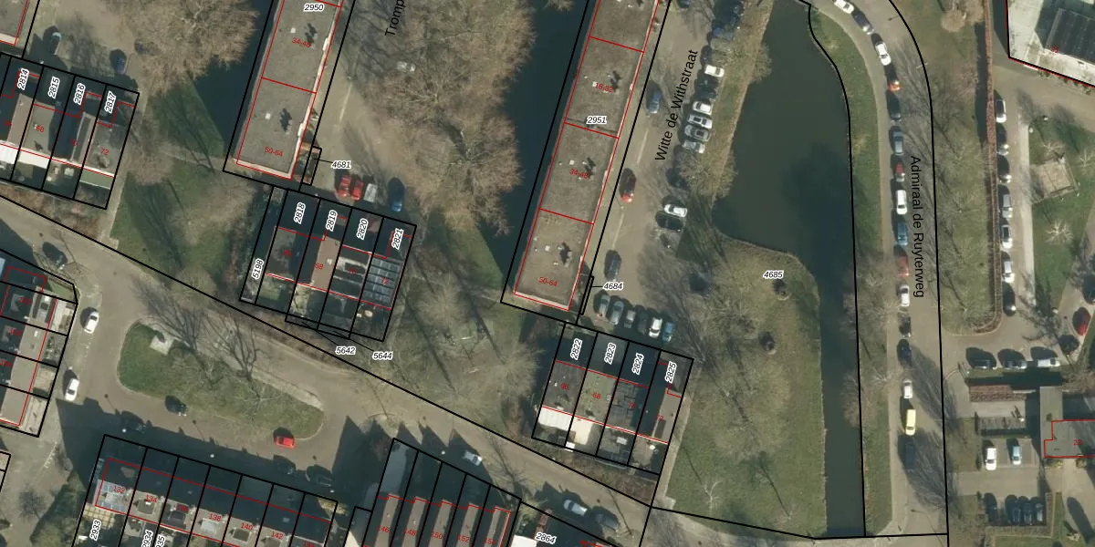 Het perceel waarop Witte de Withstraat 60 staat heeft een oppervlakte van 997 m². Dit is een groot perceel. De perceeloppervlakte wordt geregistreerd door het Kadaster. Gedetailleerde informatie over de maten van dit perceel kunt u vinden in het rapport Kadastrale kaart met maatvoering van Witte de Withstraat 60.
