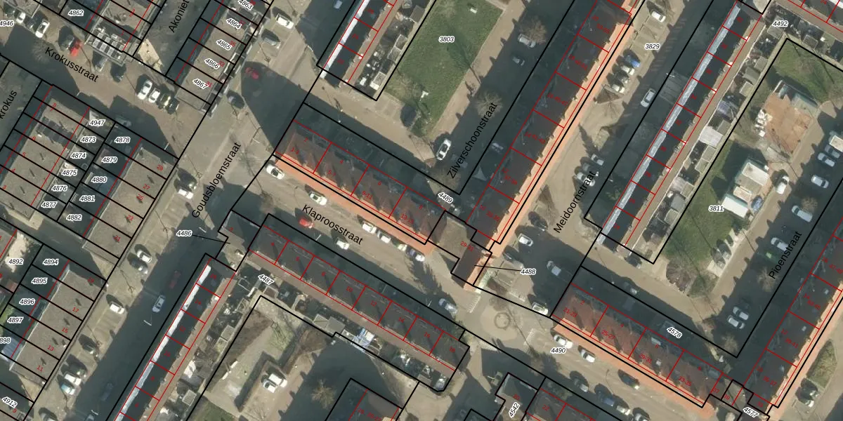 Het perceel waarop het adres ligt is PPD00-B-4489. De afkorting 'PPD00' staat voor kadastrale gemeente Papendrecht. De gemiddelde perceeloppervlakte in de kadastrale gemeente Papendrecht is 960,47 m². Dit perceel is met zijn 1648 m² dus groter dan gemiddeld. Het grootste perceel in de kadastrale gemeente is 21,7 ha. Het kleinste perceel heeft een oppervlakte van 0 m². Op het perceel zijn 31 adressen aanwezig. In de Basisregistratie Kadaster (BRK) werden de grenzen van het perceel geregistreerd op 04-07-2000.