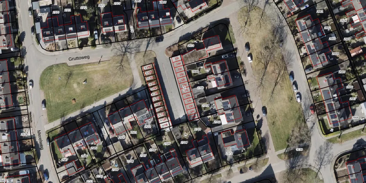 Gruttoweg 13-r is gelegen op kadastraal perceel EDE02B2523. Deze kadastrale aanduiding is uniek en wordt gebruikt door het Kadaster om eigendomsrechten en andere zakelijke rechten vast te leggen. Het perceel maakt onderdeel uit van de kadastrale gemeente Eelde.