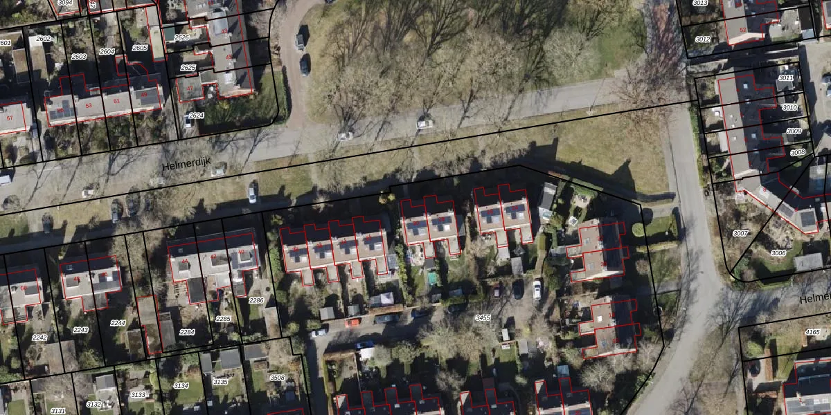 Helmerdijk 30 is gelegen op kadastraal perceel EDE02E3455. Deze kadastrale aanduiding is uniek en wordt gebruikt door het Kadaster om eigendomsrechten en andere zakelijke rechten vast te leggen. Het perceel maakt onderdeel uit van de kadastrale gemeente Eelde.