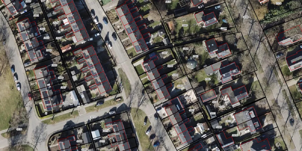 Gebruik de zoekbalk of klik op een perceel voor informatie over de adressen binnen dit perceel.