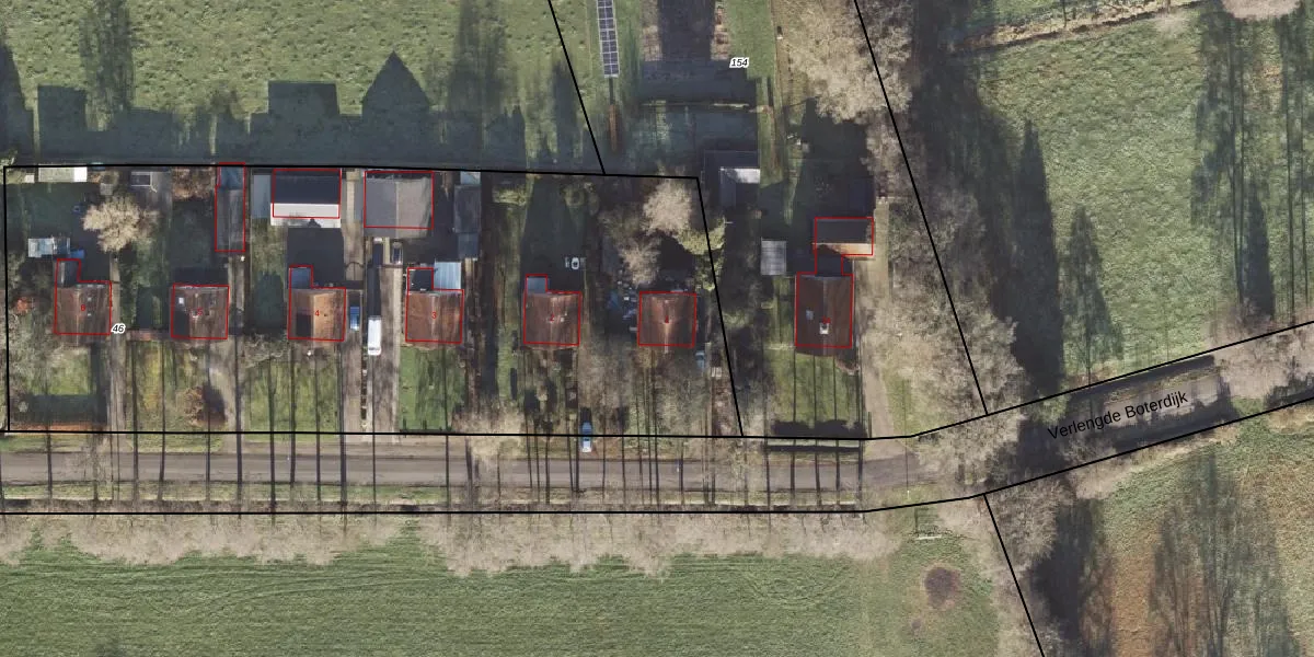 Verlengde Boterdijk 1 is gelegen op kadastraal perceel EDE02F46. Deze kadastrale aanduiding is uniek en wordt gebruikt door het Kadaster om eigendomsrechten en andere zakelijke rechten vast te leggen. Het perceel maakt onderdeel uit van de kadastrale gemeente Eelde.
