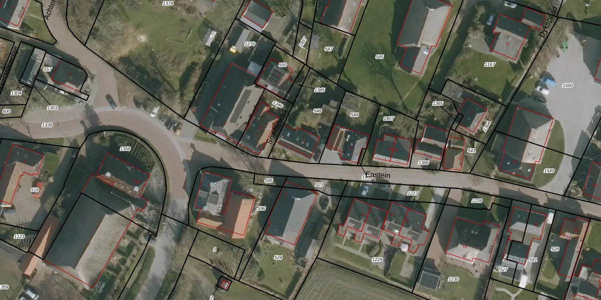 Het perceel waarop Eastein 4 staat heeft een oppervlakte van 444 m². Dit is een groot perceel. De perceeloppervlakte wordt geregistreerd door het Kadaster. Gedetailleerde informatie over de maten van dit perceel kunt u vinden in het rapport Kadastrale kaart met maatvoering van Eastein 4.
