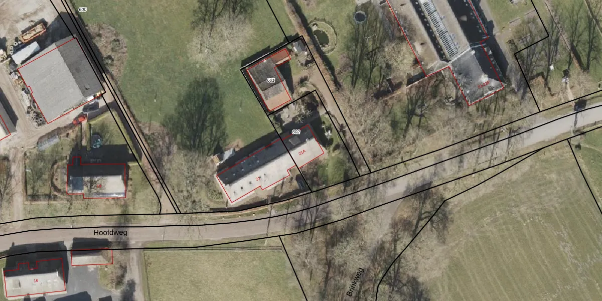 Hoofdweg 21-A is gelegen op kadastraal perceel NOR00V602. Deze kadastrale aanduiding is uniek en wordt gebruikt door het Kadaster om eigendomsrechten en andere zakelijke rechten vast te leggen. Het perceel maakt onderdeel uit van de kadastrale gemeente Norg.
