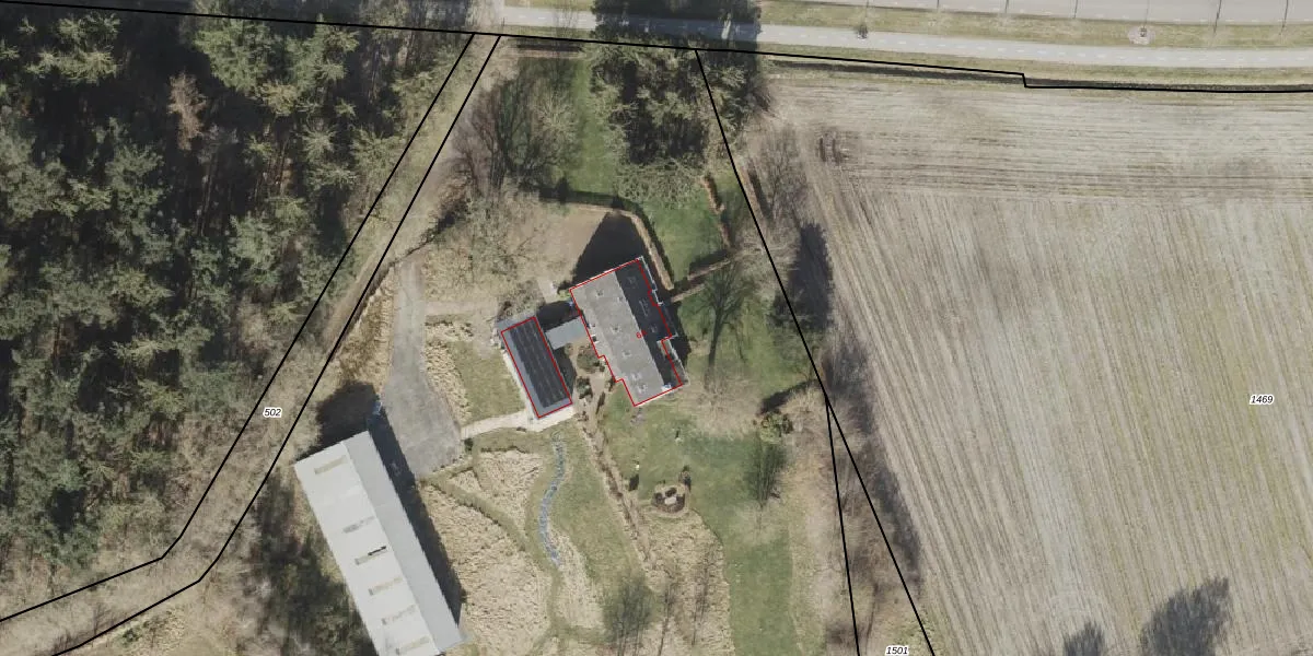Het perceel waarop het adres ligt is NOR00-V-1499. De afkorting 'NOR00' staat voor kadastrale gemeente Norg. Het perceel is kleiner dan gemiddeld in Norg. Het perceel is 1,1 ha groot, terwijl het gemiddelde ligt op 1,4 ha. De grootste perceeloppervlakte in de kadastrale gemeente is 1,59 km². De kleinste oppervlakte bedraagt 1 m². Op het perceel zijn 2 adressen aanwezig. De laatste wijziging in het de Basisregistratie Kadaster (BRK) was op 04-04-2014.