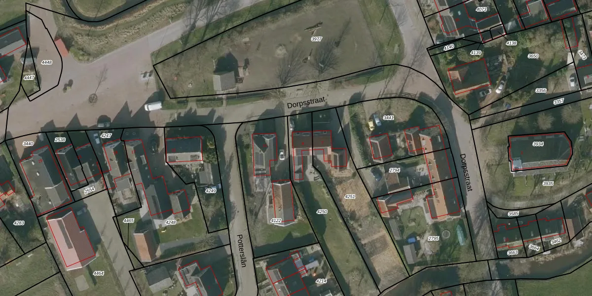 Het perceel waarop Dorpsstraat 9 staat heeft een oppervlakte van 713 m². Dit is een groot perceel. De perceeloppervlakte wordt geregistreerd door het Kadaster. Gedetailleerde informatie over de maten van dit perceel kunt u vinden in het rapport Kadastrale kaart met maatvoering van Dorpsstraat 9.