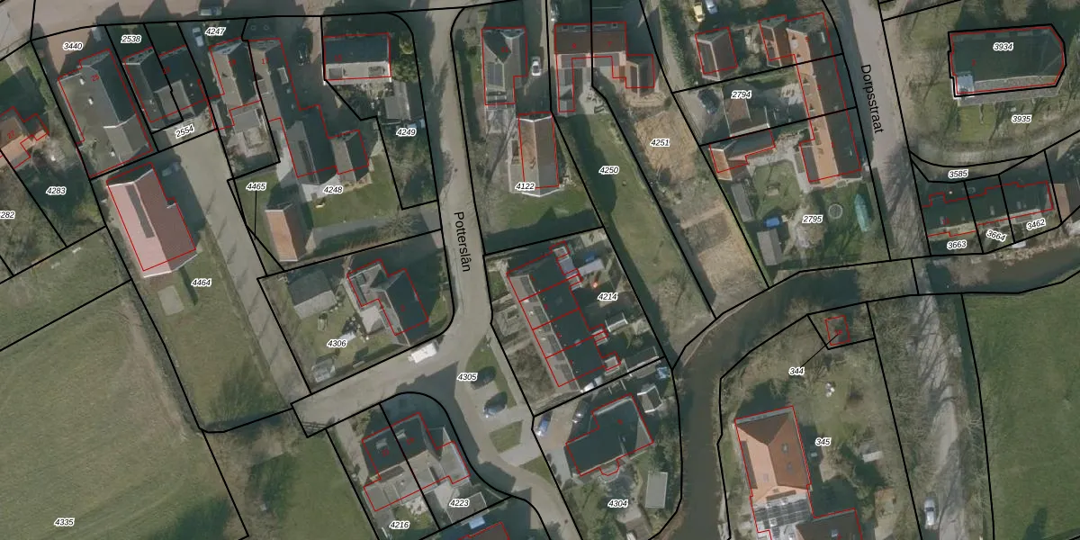 Potterslân 1 is gelegen op kadastraal perceel RIE00A4214. Deze kadastrale aanduiding is uniek en wordt gebruikt door het Kadaster om eigendomsrechten en andere zakelijke rechten vast te leggen. Het perceel maakt onderdeel uit van de kadastrale gemeente Ried.