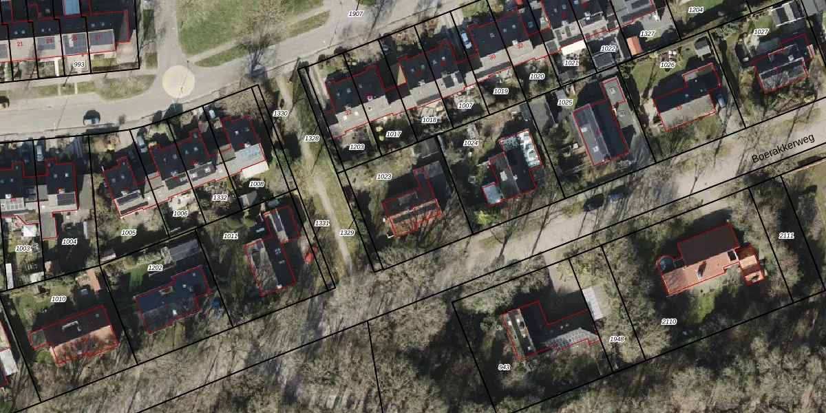Boerakkerweg 9 is gelegen op kadastraal perceel PZE00G1023. Deze kadastrale aanduiding is uniek en wordt gebruikt door het Kadaster om eigendomsrechten en andere zakelijke rechten vast te leggen. Het perceel maakt onderdeel uit van de kadastrale gemeente Peize.