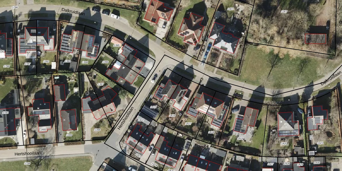 Het perceel waarop Dalkruidlaan 13 staat heeft een oppervlakte van 326 m². Dit is een groot perceel. De perceeloppervlakte wordt geregistreerd door het Kadaster. Gedetailleerde informatie over de maten van dit perceel kunt u vinden in het rapport Kadastrale kaart met maatvoering van Dalkruidlaan 13.