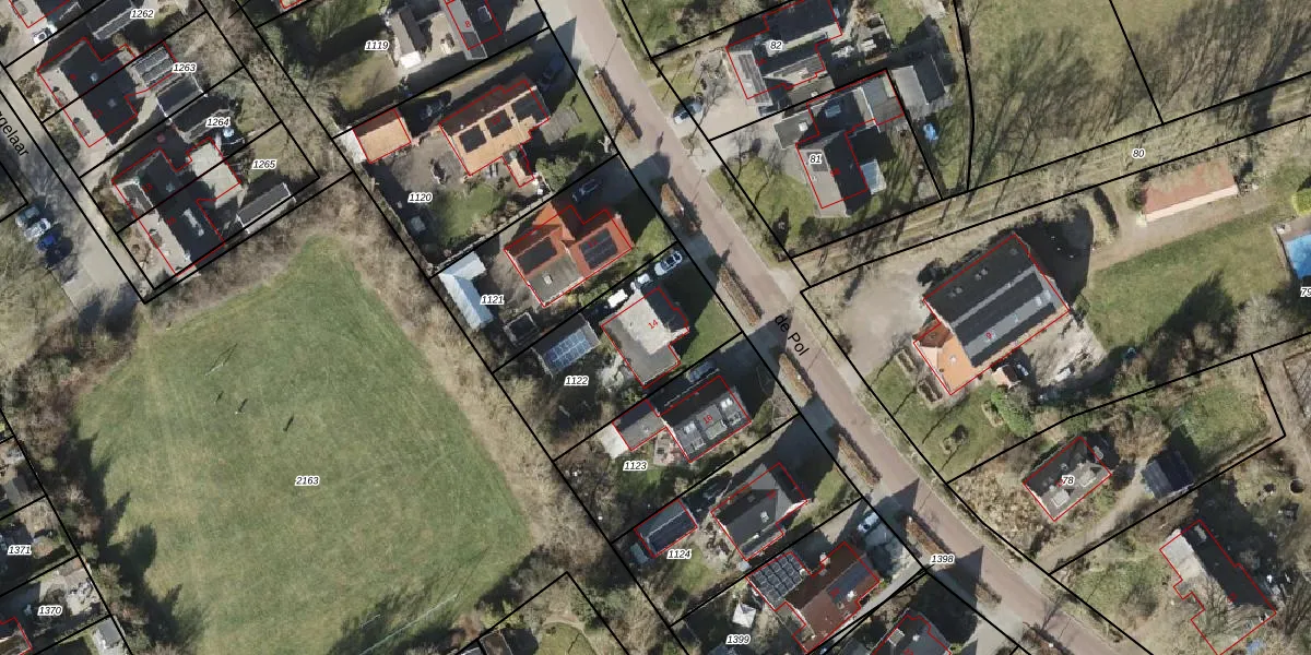 Het perceel waarop de Pol 14 staat heeft een oppervlakte van 580 m². Dit is een groot perceel. De perceeloppervlakte wordt geregistreerd door het Kadaster. Gedetailleerde informatie over de maten van dit perceel kunt u vinden in het rapport Kadastrale kaart met maatvoering van de Pol 14.