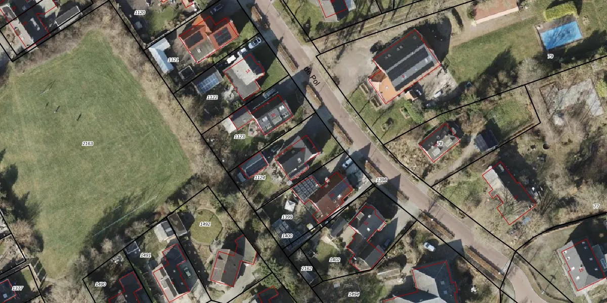 Het perceel waarop de Pol 18 staat heeft een oppervlakte van 545 m². Dit is een groot perceel. De perceeloppervlakte wordt geregistreerd door het Kadaster. Gedetailleerde informatie over de maten van dit perceel kunt u vinden in het rapport Kadastrale kaart met maatvoering van de Pol 18.