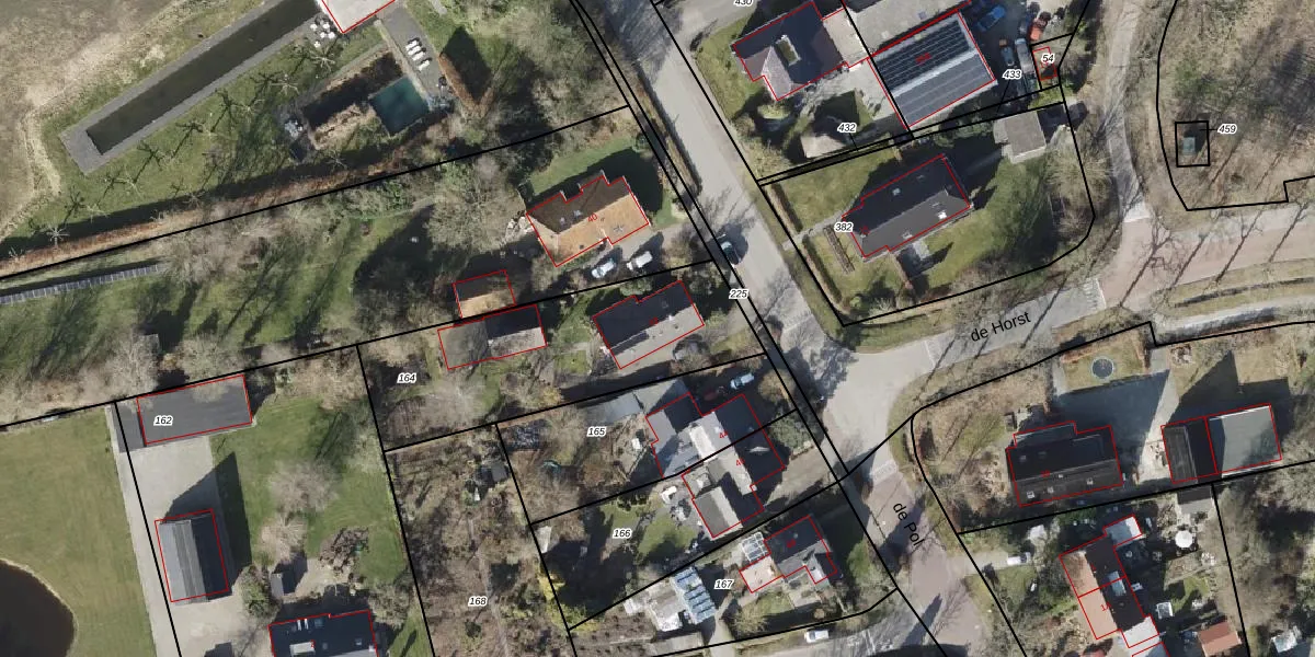 Het perceel waarop de Pol 42 staat heeft een oppervlakte van 990 m². Dit is een groot perceel. De perceeloppervlakte wordt geregistreerd door het Kadaster. Gedetailleerde informatie over de maten van dit perceel kunt u vinden in het rapport Kadastrale kaart met maatvoering van de Pol 42.