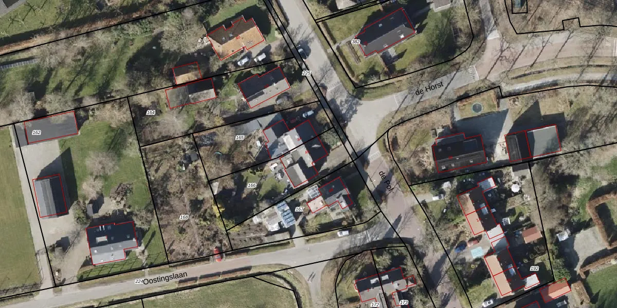 Het perceel waarop de Pol 46 staat heeft een oppervlakte van 622 m². Dit is een groot perceel. De perceeloppervlakte wordt geregistreerd door het Kadaster. Gedetailleerde informatie over de maten van dit perceel kunt u vinden in het rapport Kadastrale kaart met maatvoering van de Pol 46.